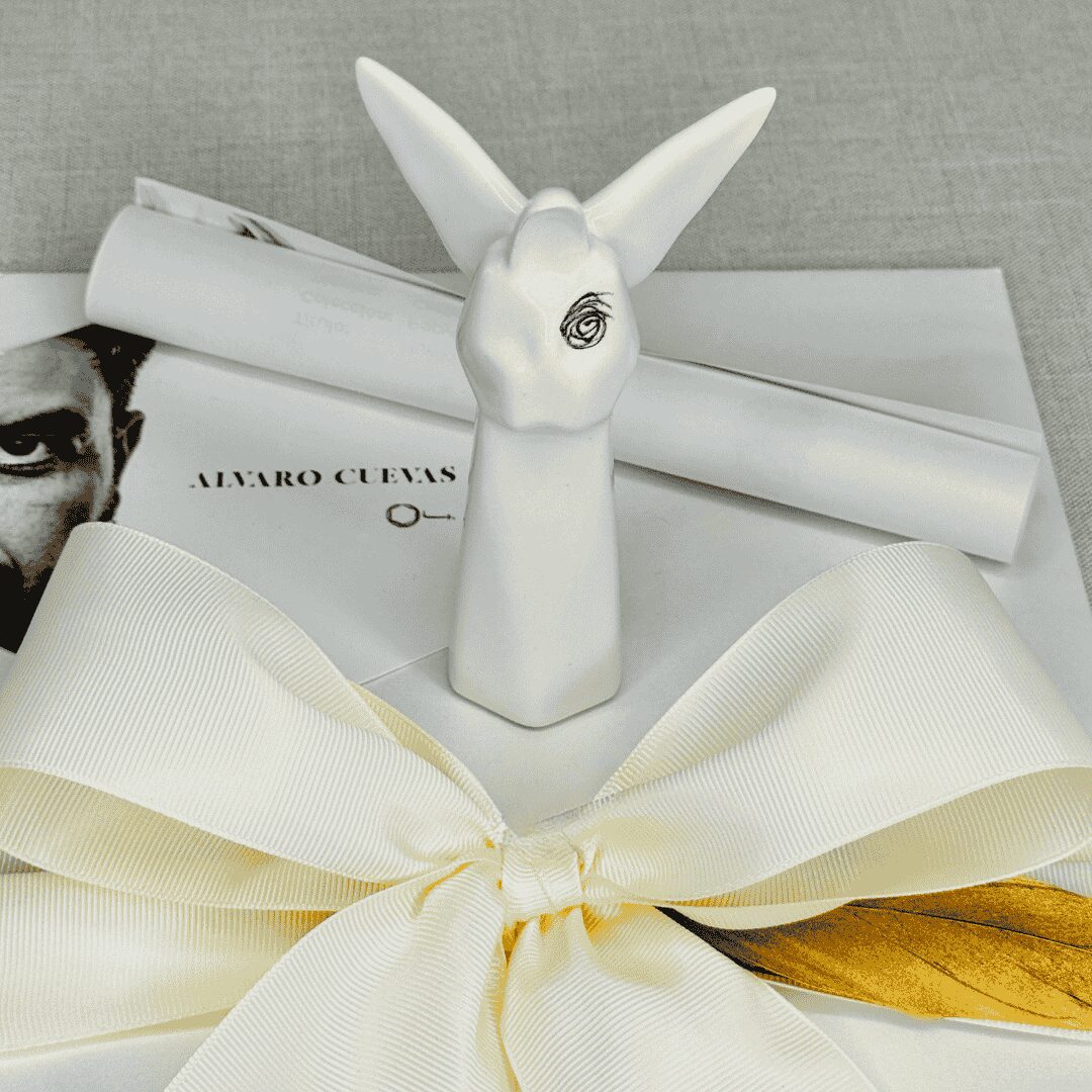 Huella de Libertad – Pieza de cerámica del artista Álvaro Cuevas, parte de la colección Papiroflexia. Disponible en tres tamaños. Incluye certificado de autenticidad y caja por separado.